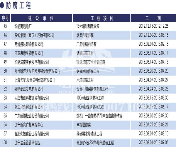 宏順建設工程有限公司是國家批準成立的專業(yè)高空作業(yè)企業(yè):承攬過(國內(nèi).國外)煙囪新建、煙囪防腐、磚煙囪新建、煙囪改造、煙囪維修、煙囪脫硫防腐、煙囪拆除加高、煙囪滑膜等高空作業(yè)工程。具有“不搭腳手架 、 不需要停產(chǎn)”施工特點。